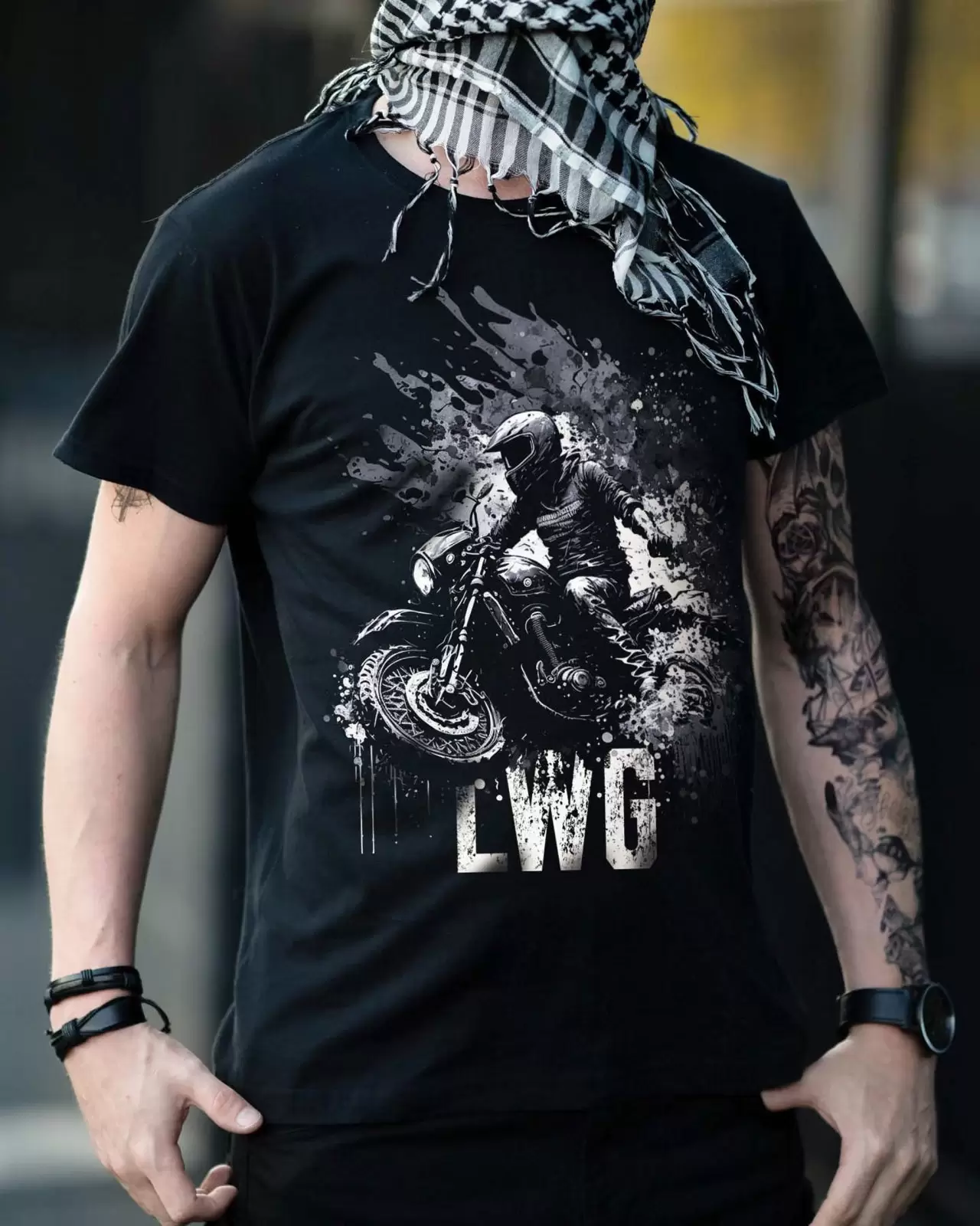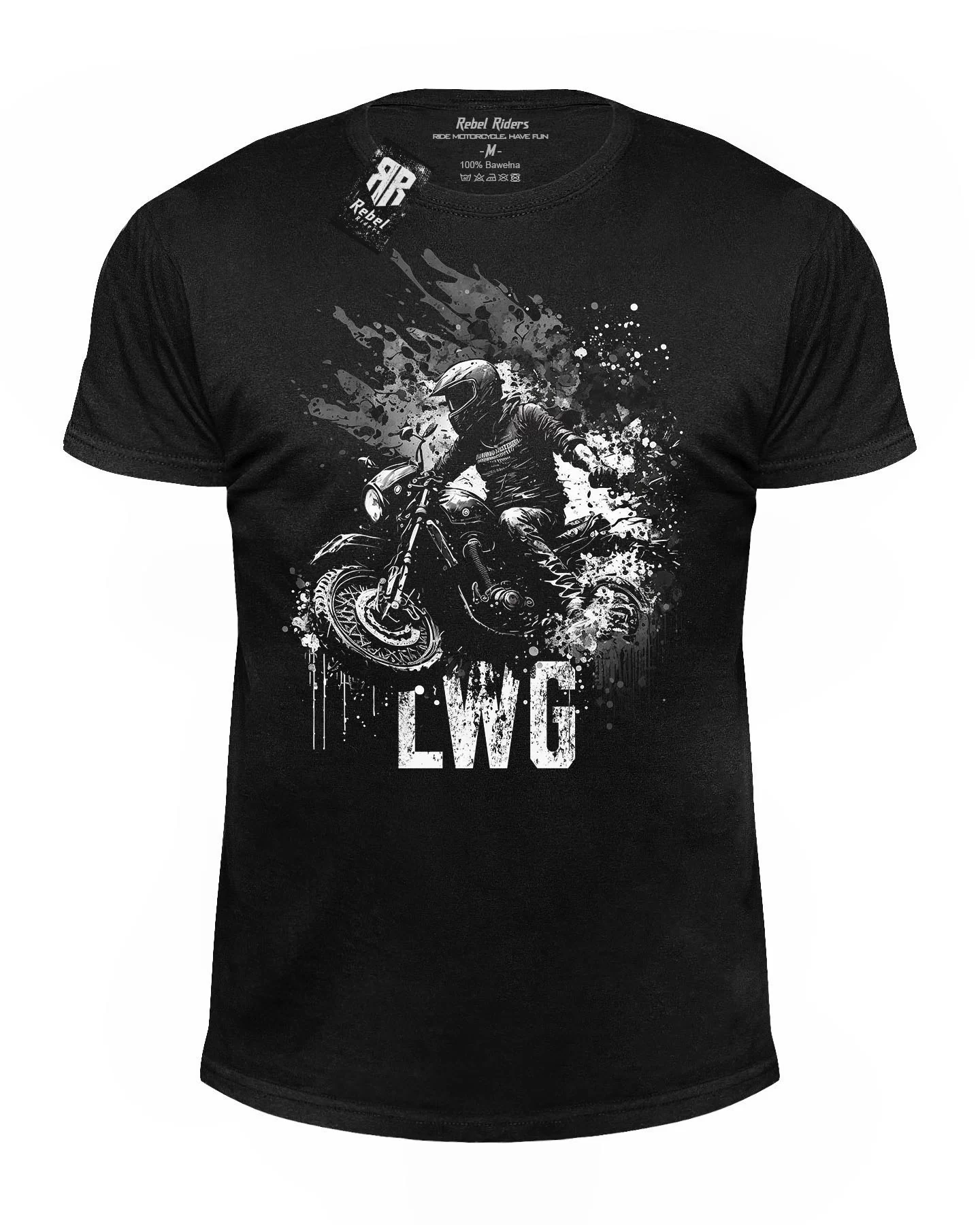 Jeśli jesteś miłośnikiem motocykli i szukasz stylowego, odważnego outfitu, to koszulka męska LWG T-Shirt jest idealnym wyborem dla Ciebie. Wykonana z wysokiej jakości materiałów, zapewniających komfort noszenia i trwałość. Czarny kolor nadaje jej rockowego charakteru, a motocyklowe grafiki w postaci jadącego motocyklisty na motocyklu choperze oraz napis "LWG" dodają jej rebelianckiego wyglądu. Ta koszulka jest nie tylko świetnym dodatkiem do Twojej garderoby, ale także doskonałym sposobem na wyrażenie swojej pasji do motoryzacji. Wybierz LWG T-Shirt i podkreśl swój indywidualny styl na drodze i poza nią.