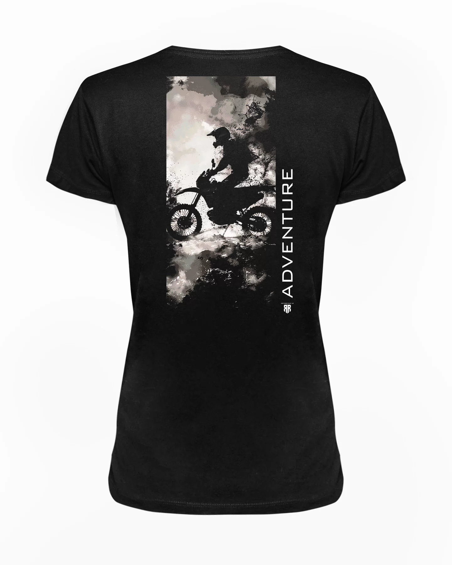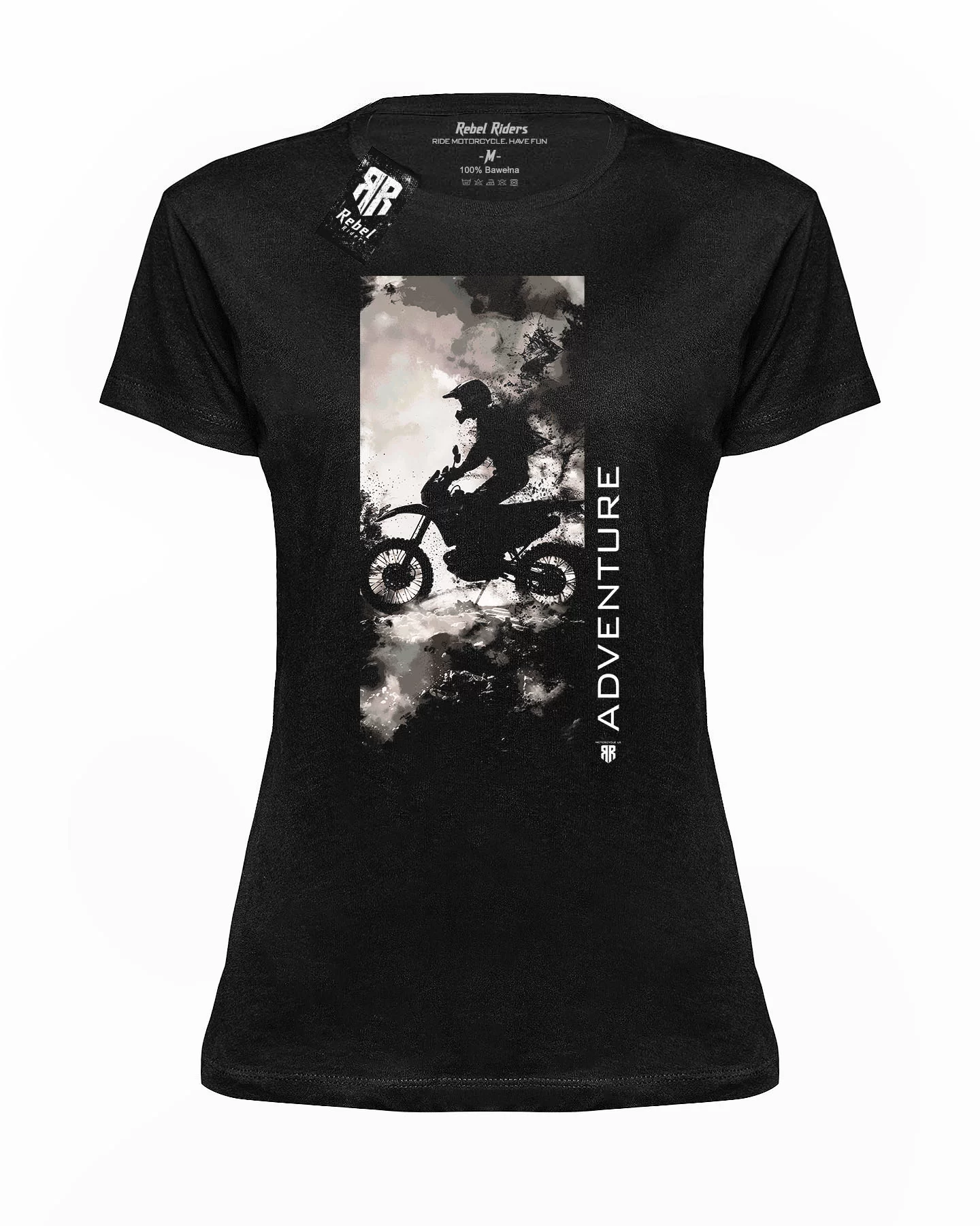 Adventure2 T-shirt damski czarny to idealna propozycja dla wszystkich kobiet, które kochają aktywny tryb życia i pragną wyrazić swój styl nie tylko na co dzień, ale również podczas spotkań ze znajomymi czy wypadów na przygodowe wyprawy. Wykonany z wysokiej jakości materiałów, zapewniających komfort noszenia i swobodę ruchu. Niezwykle modny i uniwersalny design w postaci grafiki motocrossa, doskonale komponuje się zarówno z jeansami, jak i spódnicami czy szortami. Damski T-shirt Adventure2 to świetny wybór dla wszystkich rebeliantek, które lubią wyrażać siebie poprzez swoje ubrania.