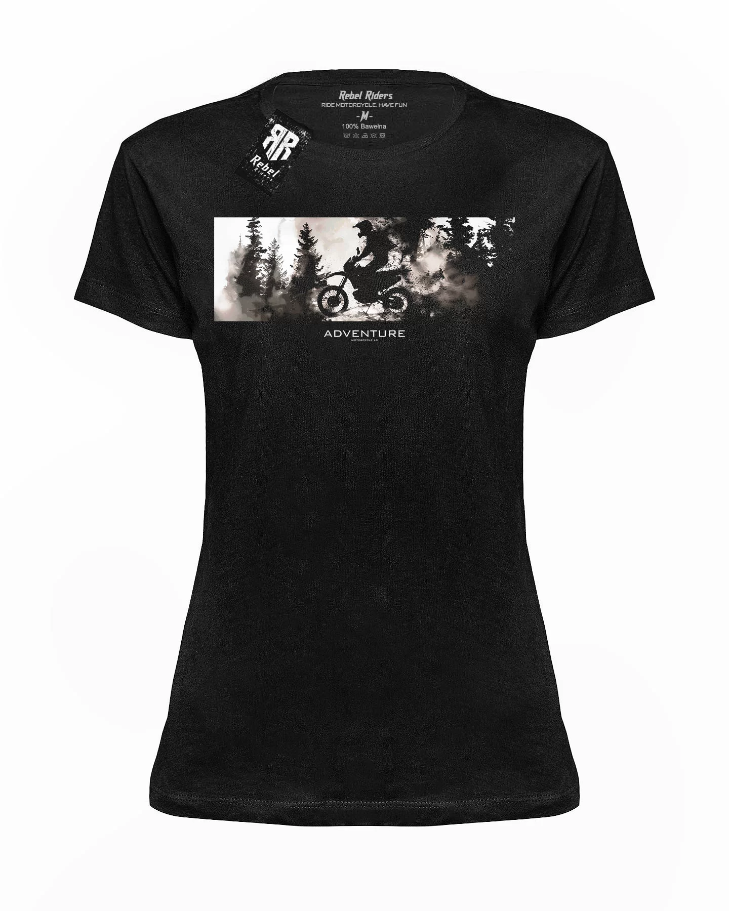W ofercie sklepu Rebel Riders znajduje się damski t-shirt Adventure4 w kolorze czarnym z grafiką enduro i lasem. Produkt ten doskonale nadaje się dla kobiet lubiących przygodę i aktywny, motocrossowy styl życia. Wykonany z wysokiej jakości materiałów, zapewniających wygodę i komfort noszenia. Idealny wybór dla miłośniczek motoryzacji i nie tylko. Klasyczny fason, który sprawdzi się zarówno na co dzień, jak i podczas bardziej wymagających aktywności. Niezawodny towarzysz w każdej sytuacji. Zdecyduj się na jakość i unikatowy design - zamów już dziś!