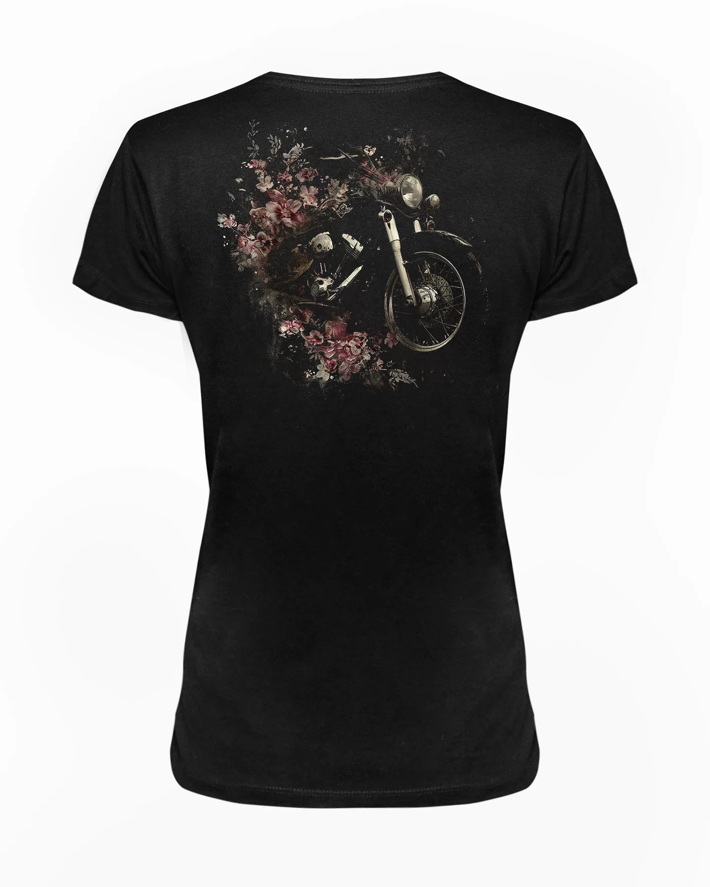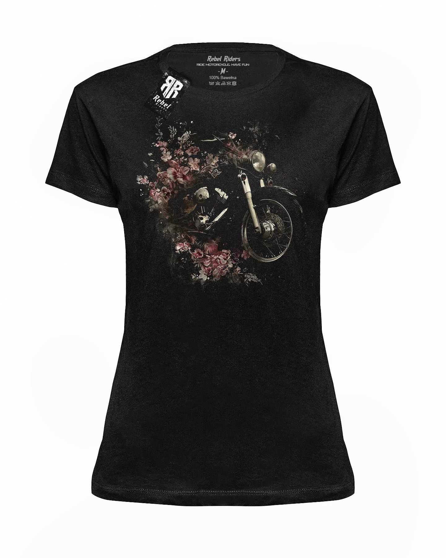Jeśli lubisz stylową modę motocyklową, ten T-shirt jest idealny dla Ciebie! Flowersmoto to połączenie elegancji, stylu i wygody, które sprawi, że poczujesz się pewnie i modnie na każdym zlocie motocyklowym. Wykonany z wysokiej jakości materiałów, ten damska koszulka w kolorze czarnym jest nie tylko estetyczna, ale również bardzo wygodna w noszeniu. Idealna na letnie dni, aby czuć się swobodnie i stylowo jednocześnie. Wspaniały prezent dla pasjonatki motocykli lub dla siebie. Wyróżnij się na drodze i wybierz Flowersmoto T-shirt już dziś!