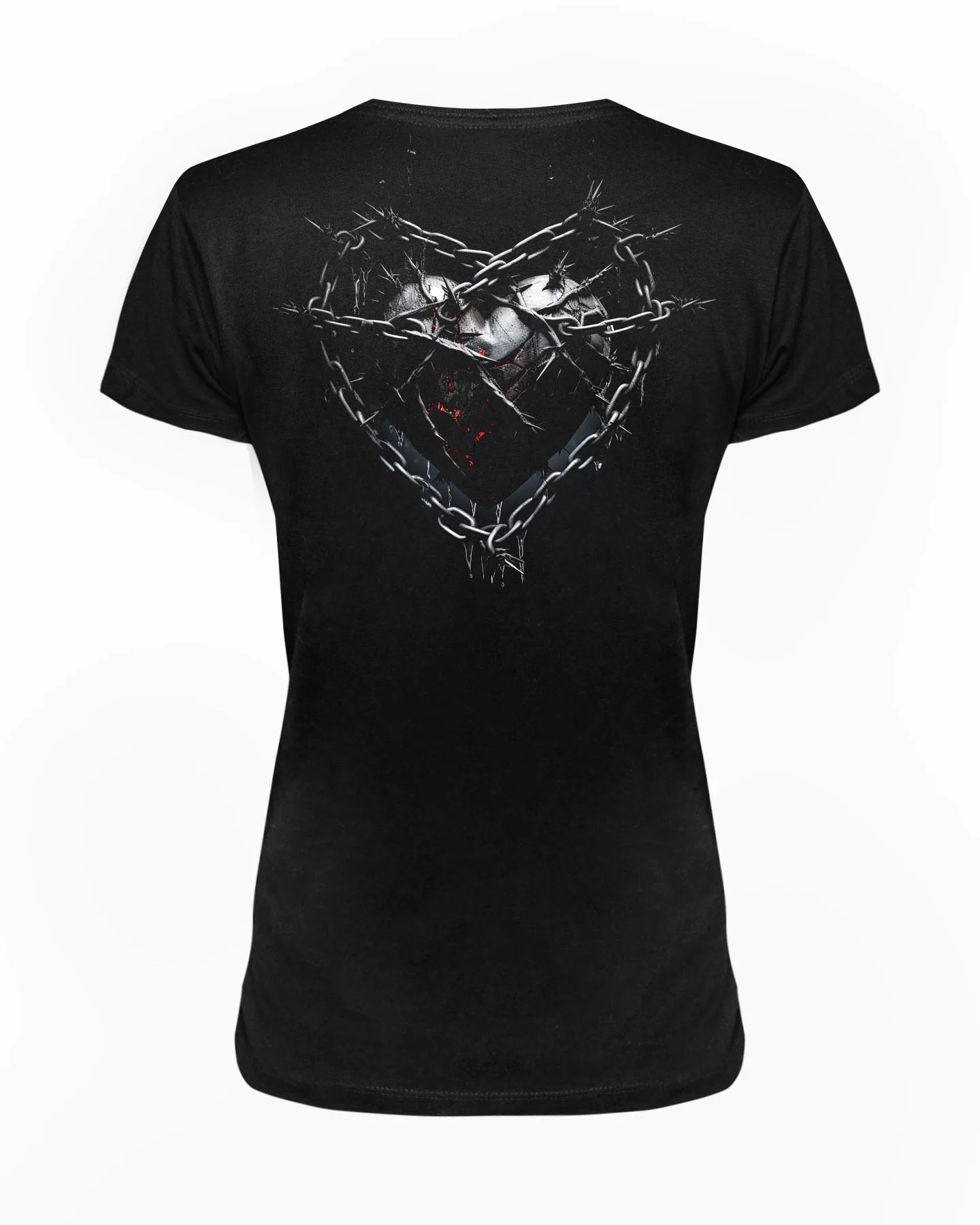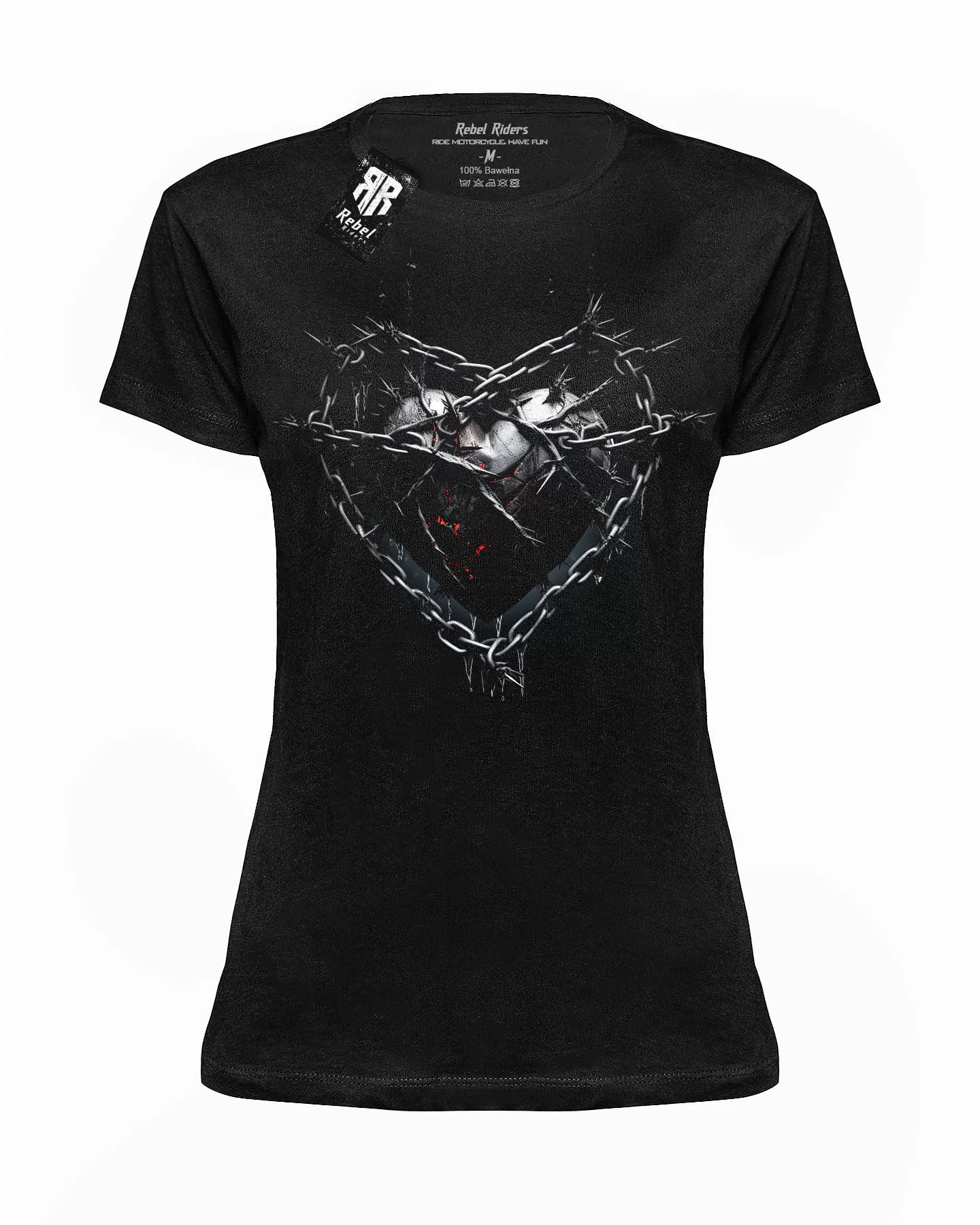 Heartchain t-shirt damski to niezwykle stylowy i dziewczęcy element garderoby dostępny w ofercie sklepu Rebel Riders. Wykonany z wysokiej jakości materiału, ten modny t-shirt doskonale podkreśli indywidualny styl każdej kobiety. Serce z łańcuchem to motyw przewodni tego produktu, nadający mu wyjątkowego charakteru. Damski t-shirt ten jest idealny do codziennych stylizacji oraz na wieczorne wyjścia. Dostępny w różnych rozmiarach, zapewniający pełen komfort noszenia. Postaw na jakość i wyrazisty design - wybierz Heartchain t-shirt damski dostępny w ofercie Rebel Riders!