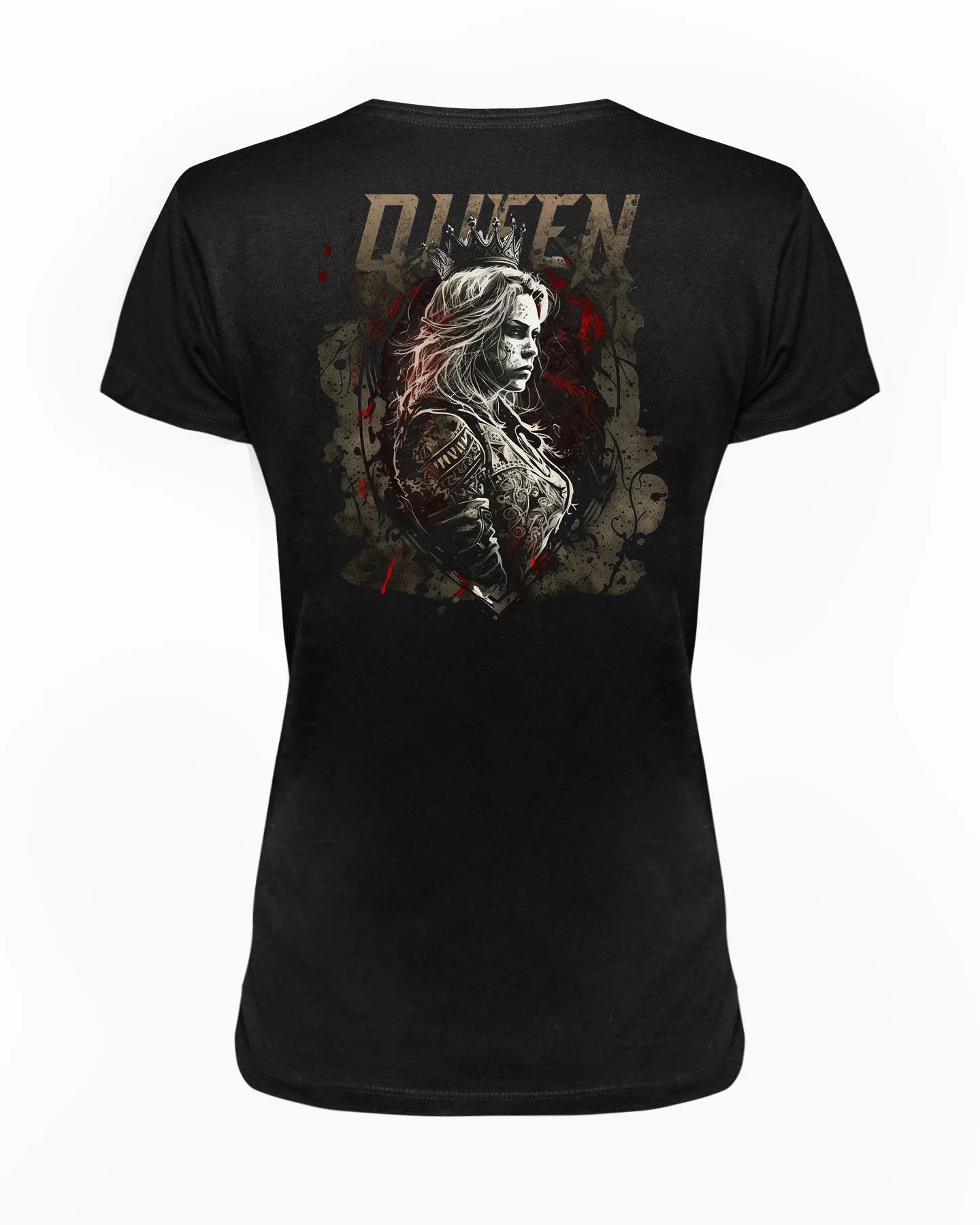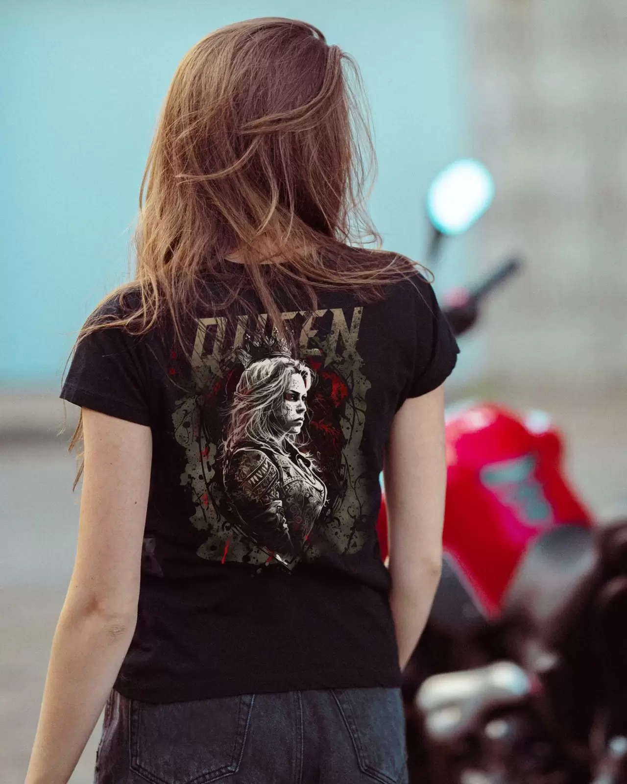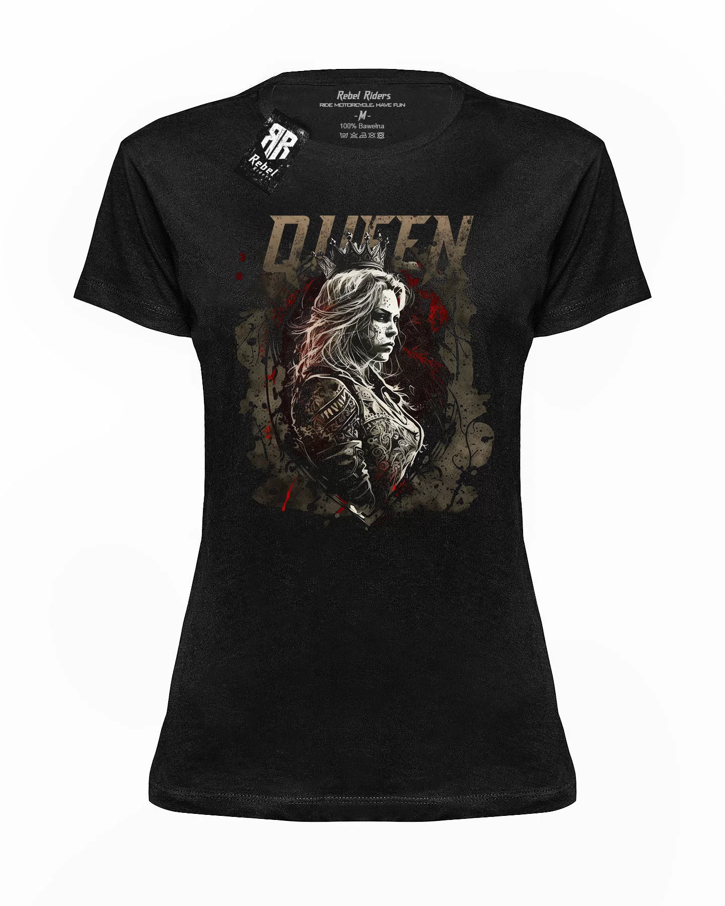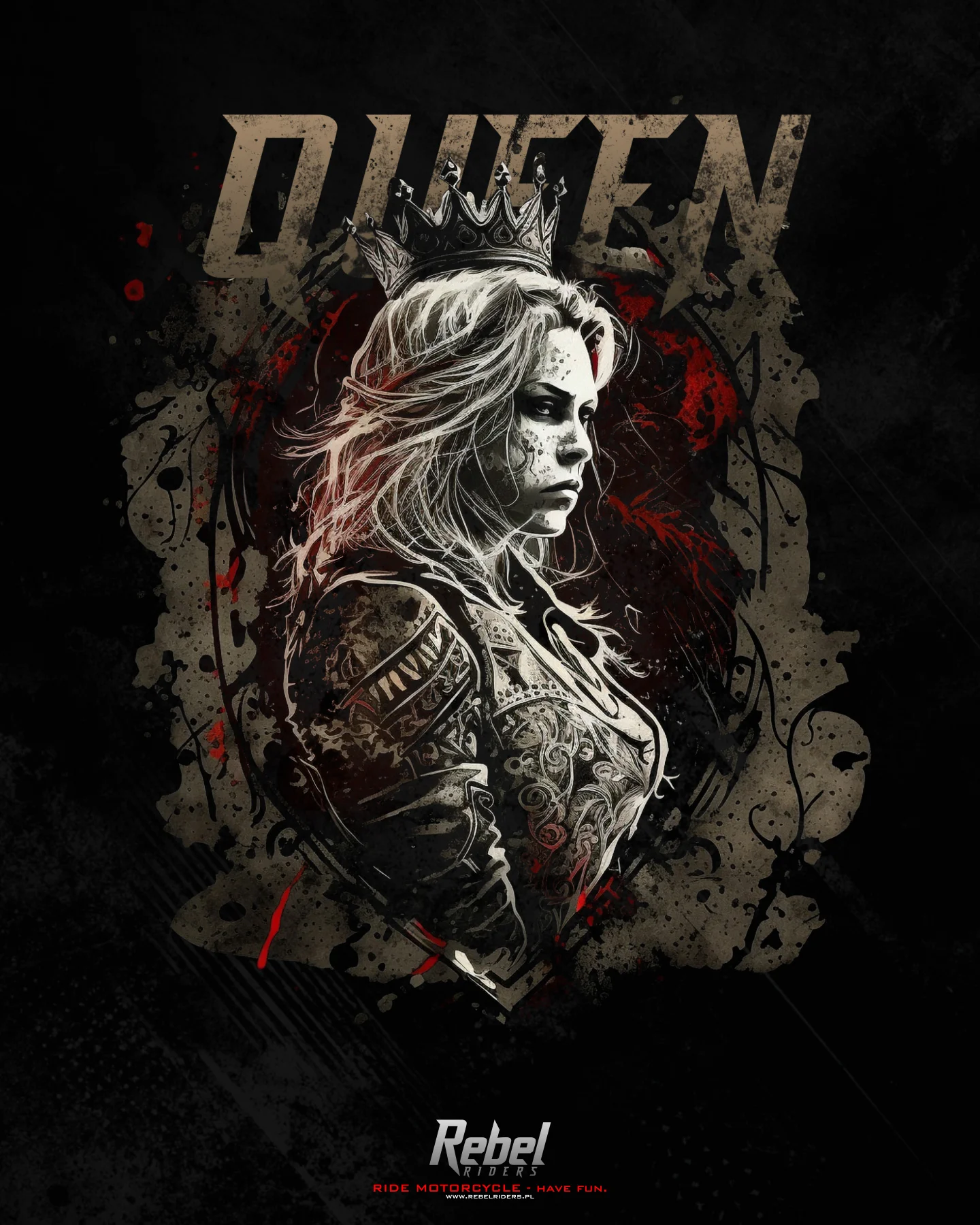 Czarna koszulka damska z wzorem młodej walecznej królowej to idealna propozycja dla kobiet, które chcą poczuć się silne i pewne siebie. Wykonana z wysokiej jakości materiału, doskonale dopasowuje się do sylwetki, podkreślając atuty figury. Na koszulce znajduje się grafika przedstawiająca królową w koronie, która emanuje powerem i determinacją. Idealna propozycja zarówno na co dzień, jak i na specjalne okazje, gdy chcesz poczuć się jak prawdziwa królowa. To nie tylko wygodny element garderoby, ale także wyrazisty sposób wyrażenia swojej osobowości i silnego charakteru. Dostępna w sklepie internetowym Rebel Riders, gdzie znajdziesz wiele innych unikatowych i designerskich propozycji dla kobiet z charakterem. Nie bądź zwykła, bądź królową rebeliantką!