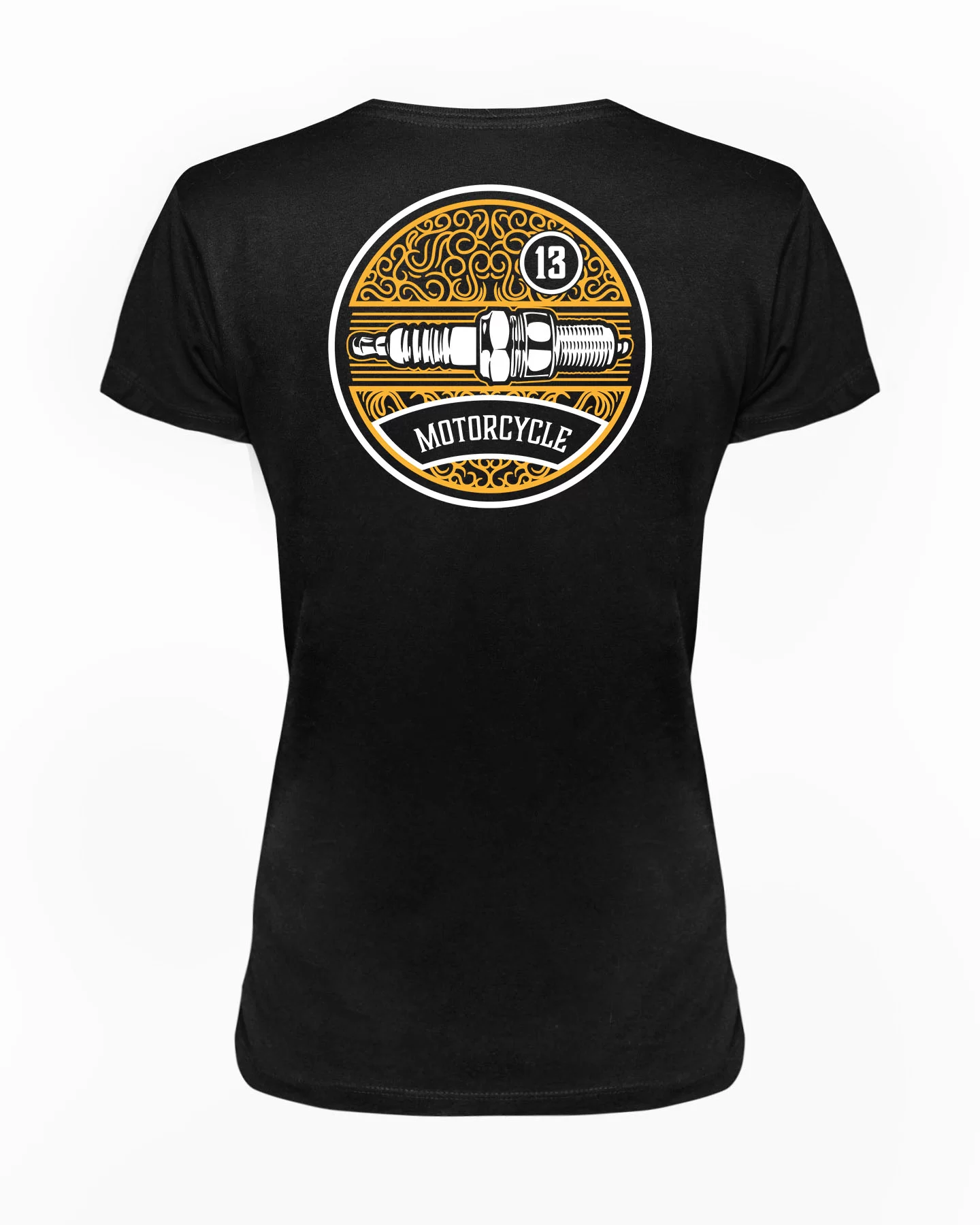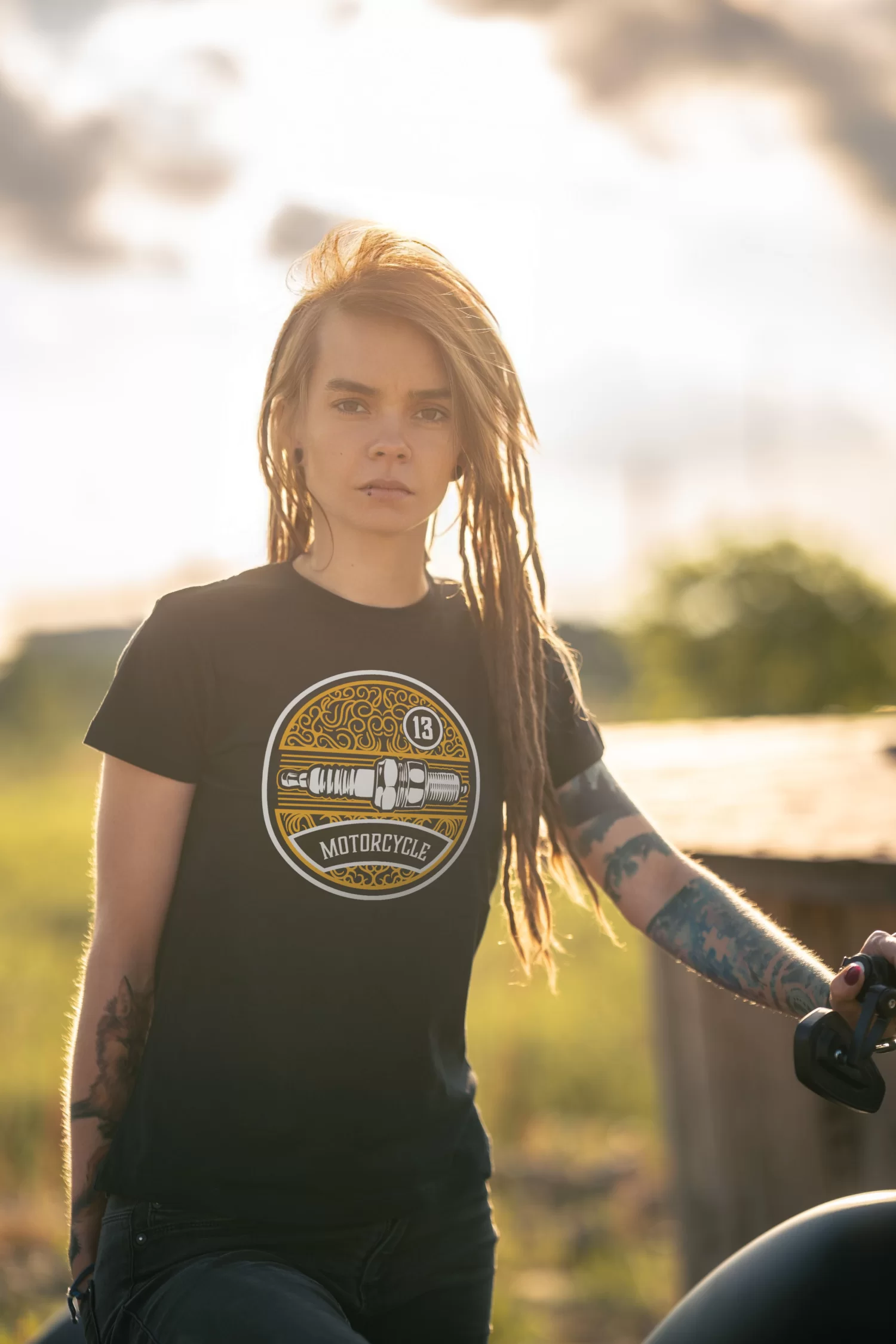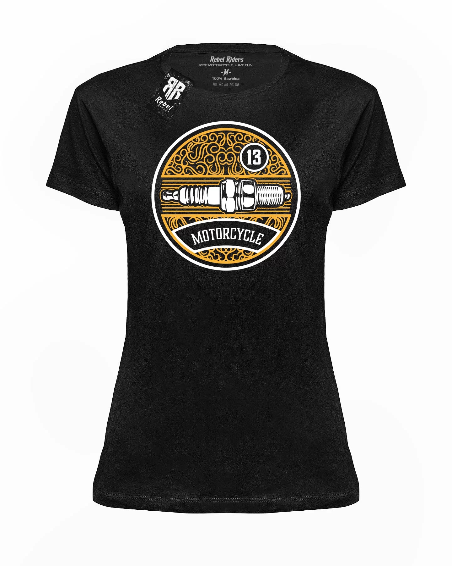 T-shirt damski Sparkplug13 w kolorze czarnym z motywem świecy zapłonowej to idealna propozycja dla kobiet poszukujących stylowej i wygodnej odzieży. Wykonany z wysokiej jakości materiału, gwarantuje komfort noszenia i świetne dopasowanie do sylwetki. T-shirt ten świetnie sprawdzi się zarówno na co dzień, jak i na bardziej casualowe okazje. Charakteryzuje się oryginalnym wzorem oraz wykonaniem, które dodają mu charakteru i sprawiają, że wyróżnisz się z tłumu. Dzięki tej propozycji od Rebel Riders, Twój look nabierze wyjątkowego pazura i indywidualnego stylu. Odkryj naszą ofertę T-shirtów damskich i zrób miejsce na Sparkplug13 w swojej szafie!
