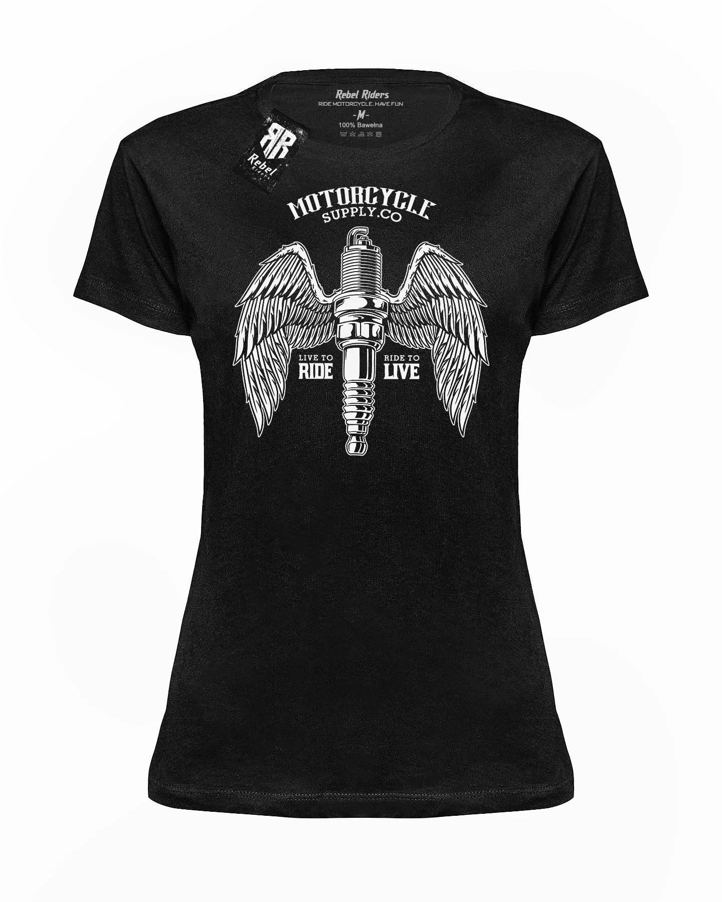 T-shirt damski Sparkwings to idealna propozycja dla kobiet, które lubią wyraziste wzory i unikatowe detalie. Czarna baza z delikatnymi, białymi dodatkami sprawia, że ten model wyróżnia się w tłumie. Godny uwagi motyw skrzydeł nadaje całości nutkę rockowego charakteru. Wygodny krój i wysoka jakość materiałów zapewniają komfort noszenia na co dzień. Świetny wybór dla rebeliantek i indywidualistek.