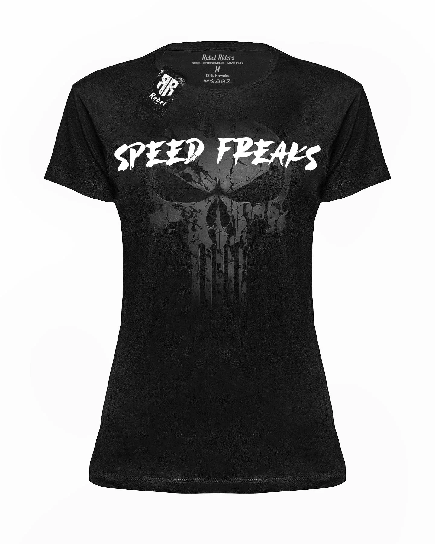 Speedfreaks T-shirt damska to propozycja dla fanek sportowego stylu. Koszulka w kolorze czarnym z białym nadrukiem Speedfreaks i czaszką Punishera idealnie wpisuje się w miejski look. Wykonana z wysokiej jakości materiałów, gwarantuje nie tylko wygodę, ale także trwałość. Produkt dostępny w różnych rozmiarach, doskonale dopasuje się do każdej sylwetki. Idealna propozycja dla kobiet ceniących sobie oryginalny design i wygodę. Zacznij zabawę z modą i wybierz Speedfreaks T-shirt damska już teraz!