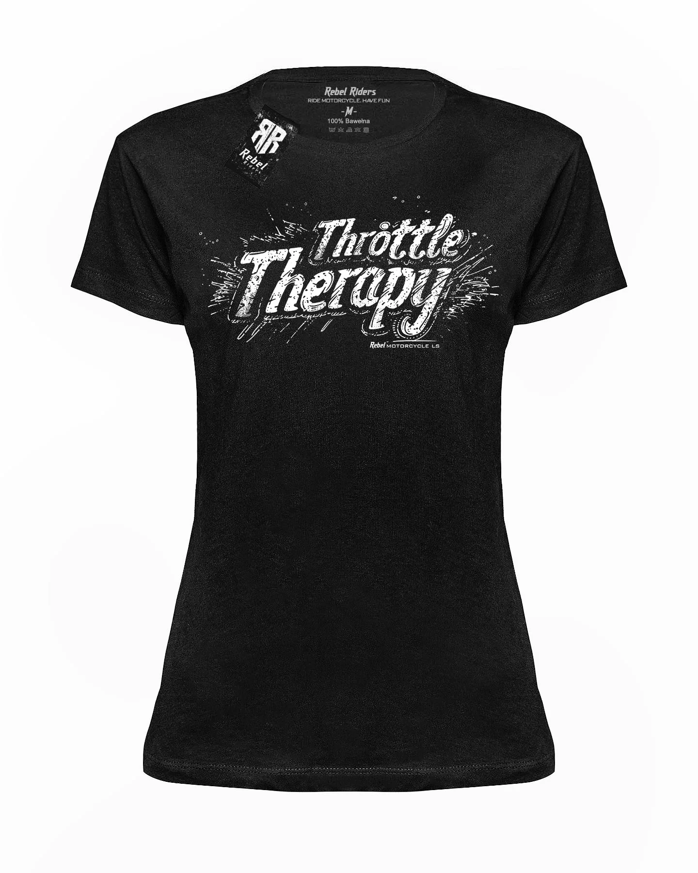 T-shirt damski Therapy2 w kolorze czarnym to idealna propozycja dla miłośniczek rockowej stylizacji. Wykonany z wysokiej jakości materiału, gwarantuje komfort noszenia i trwałość. Klasyczny krój dopasowuje się do sylwetki, podkreślając kobiece kształty. Na froncie umieszczono oryginalny napis Throttle Therapy, co nadaje koszulce charakterystycznego wyglądu. Doskonały wybór dla kobiet, które lubią wyróżniać się i manifestować swój niezależny styl.
