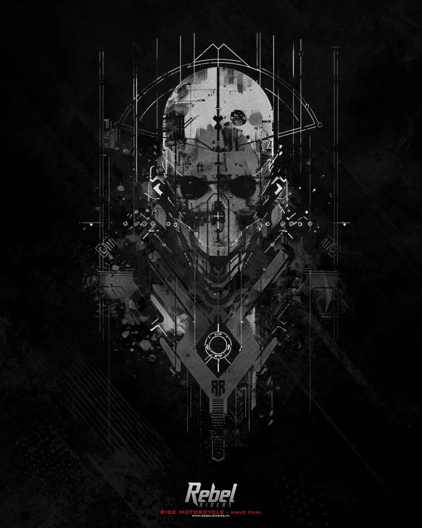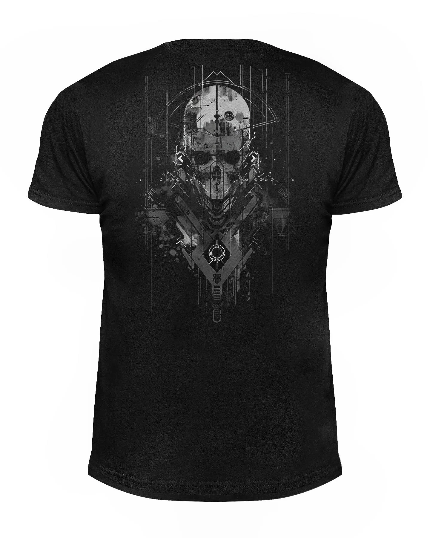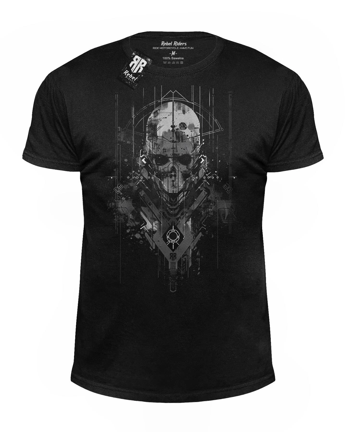 Sklep Rebel Riders oferuje nowy, modny t-shirt męski z kolekcji CyberP z futurystyczną grafiką cyber czaszki. T-shirt jest czarny, doskonale wpisujący się w miejski styl. Wykonany z wysokiej jakości materiałów, zapewniających wygodę i komfort noszenia. Idealny do codziennych stylizacji dla mężczyzn, którzy lubią odważne i oryginalne wzory. Postaw na jakość i indywidualny styl z t-shirtem męskim CyberP dostępnym w ofercie sklepu Rebel Riders.