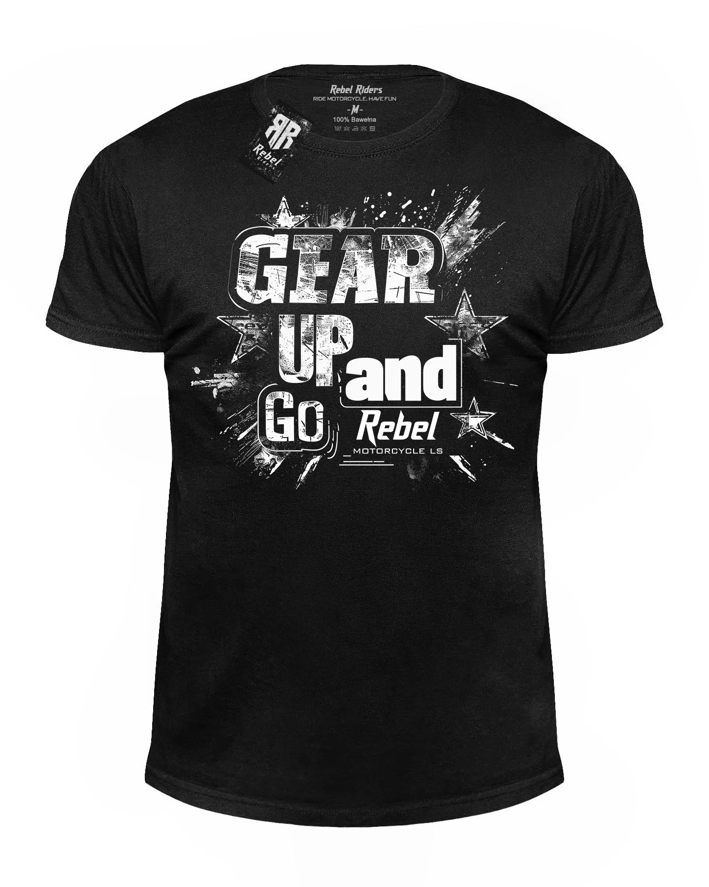 GearUp T-shirt męski czarny to idealna propozycja dla miłośników motoryzacji i sportów motorowych. Wykonany z wysokiej jakości materiału, gwarantuje wygodę i komfort noszenia. Ten stylowy t-shirt z białymi gwiadkami i napisem "Gear up and go" doskonale sprawdzi się zarówno na co dzień, jak i podczas spotkań z pasjonatami motoryzacji. Czarny kolor sprawia, że można go swobodnie łączyć z różnymi stylizacjami. Produkt dostępny w sklepie internetowym Rebel Riders - miejsce, gdzie odnajdziesz wszystko, czego potrzebuje każdy prawdziwy fan tego emocjonującego sportu. Dołącz do rebeliantów i wyraź swoje zamiłowanie do motoryzacji za pomocą tego wyjątkowego t-shirta.