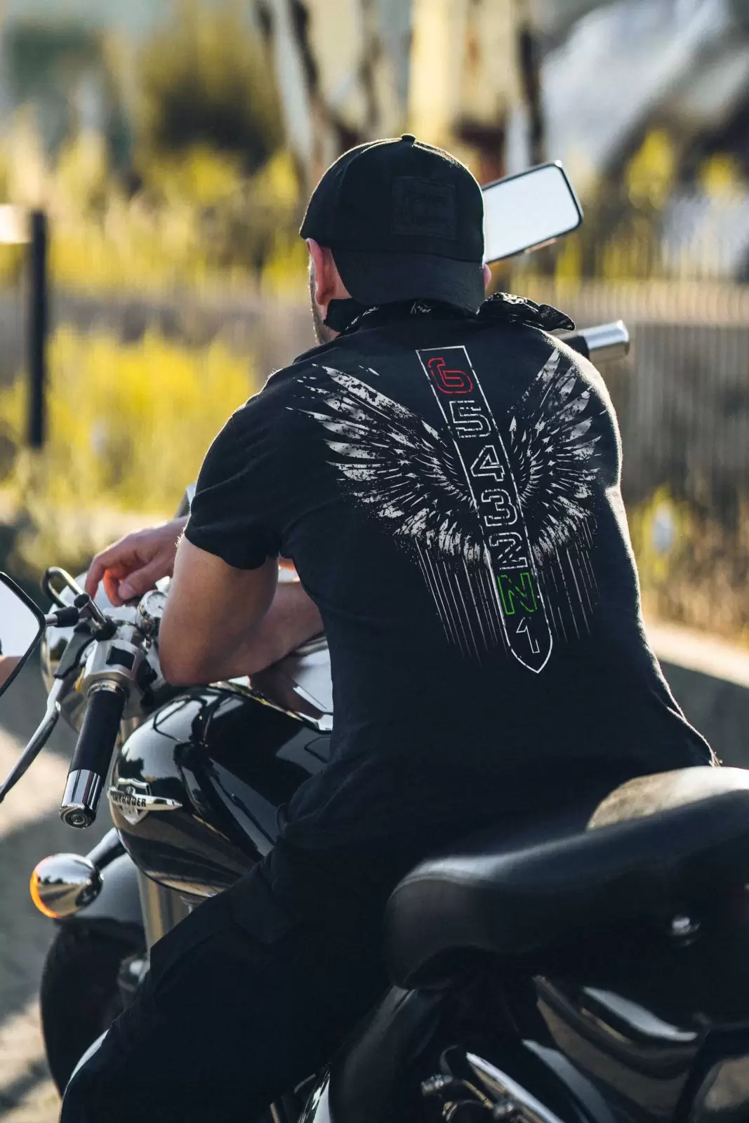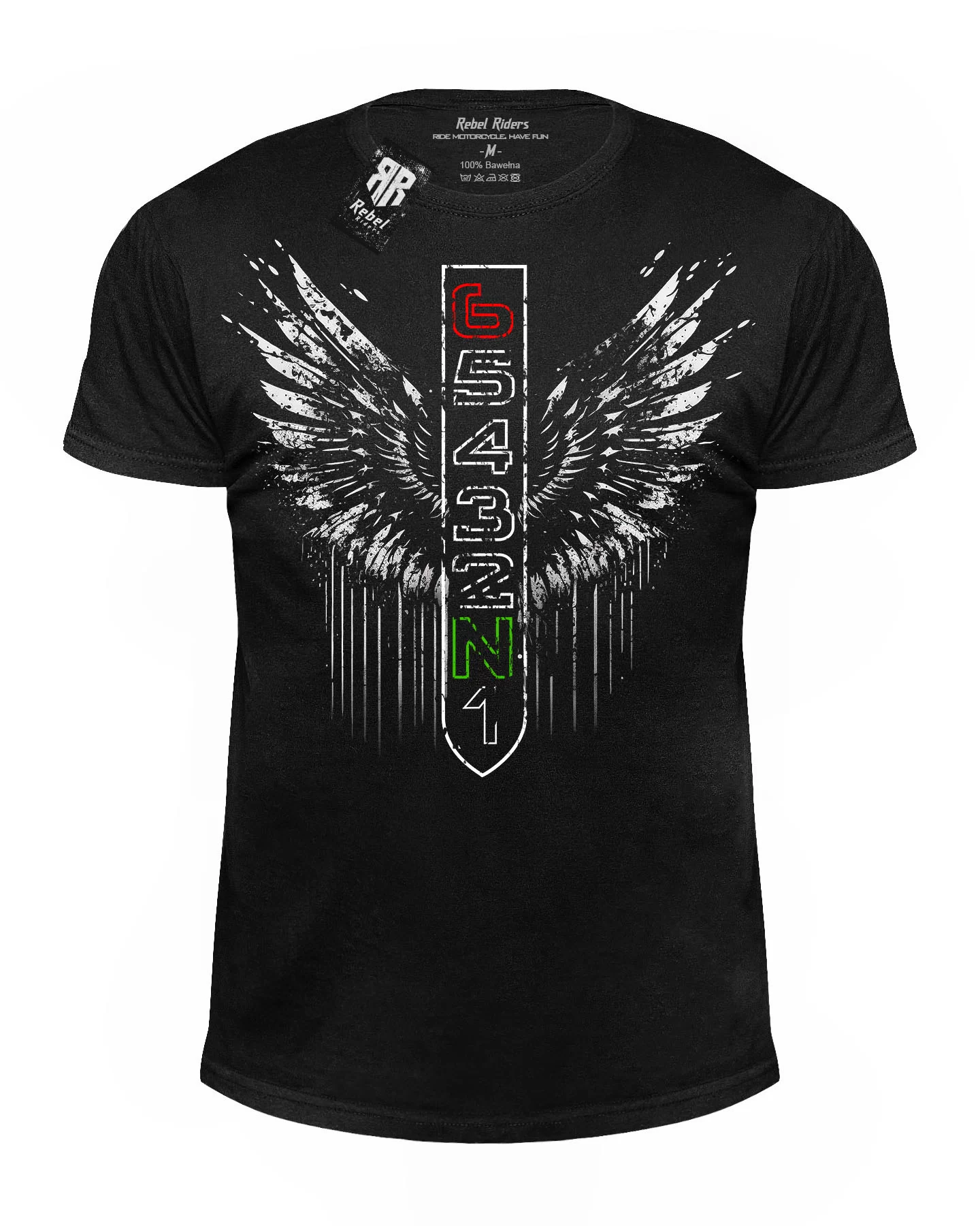 Klasyczny i stylowy T-shirt męski w kolorze czarnym to idealna propozycja dla aktywnych i dynamicznych mężczyzn. Wykonany z wysokiej jakości materiałów gwarantuje komfort noszenia i trwałość. Na froncie znajduje się czarno biało zielona grafika "Rebelgearwings" oraz motyw skrzydeł, dodająca charakteru i oryginalności. Ten T-shirt doskonale sprawdzi się zarówno na co dzień, jak i podczas aktywności sportowych. Doskonały wybór dla osób, które cenią sobie wygodę i modny design. Odkryj go teraz na stronie Rebel Riders!