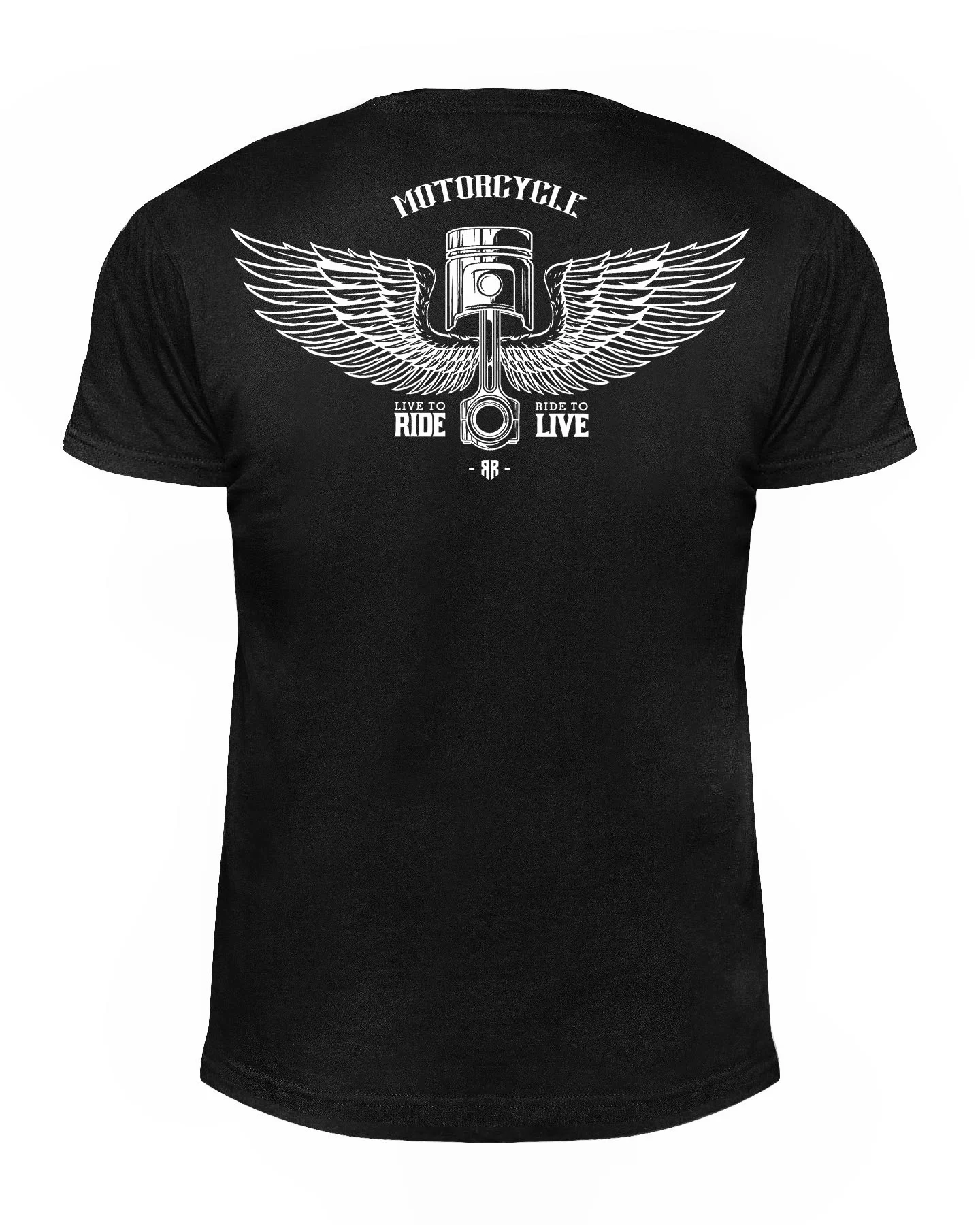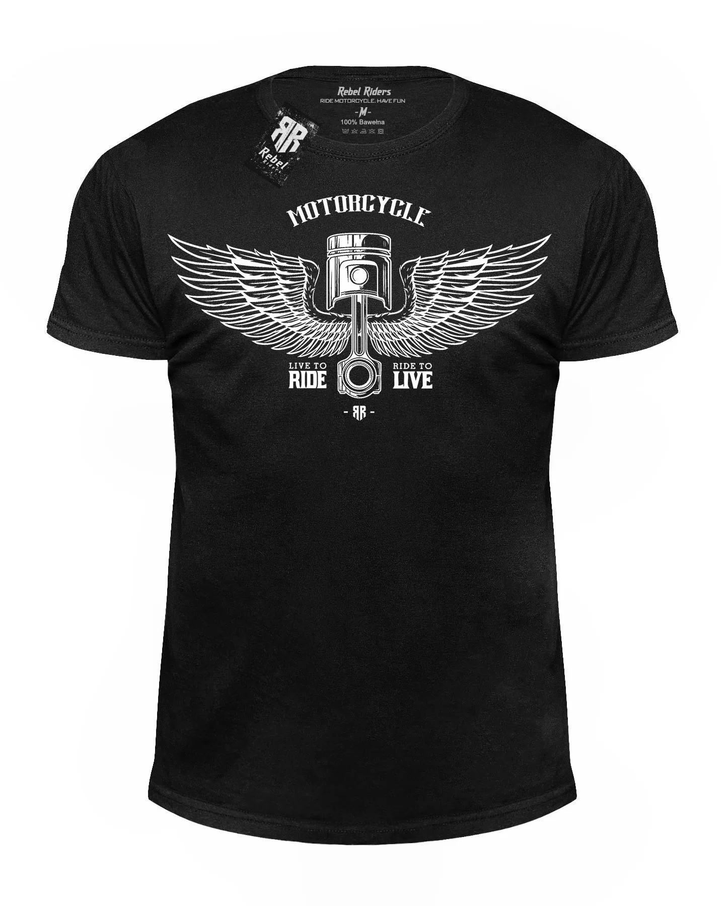 T-shirt męski RLR3 w kolorze czarnym z motywem skrzydeł - doskonała propozycja dla rebeliantów! Rebel Riders proponuje nowoczesny, stylowy i wygodny T-shirt, który idealnie podkreśli twój indywidualny styl. Wykonany z wysokiej jakości materiałów, gwarantuje komfort noszenia. Czarny kolor dodaje charakteru i sprawia, że to niezwykle uniwersalny element każdej męskiej garderoby. Dostępny w różnych rozmiarach, aby każdy mężczyzna mógł znaleźć idealnie dopasowany model.