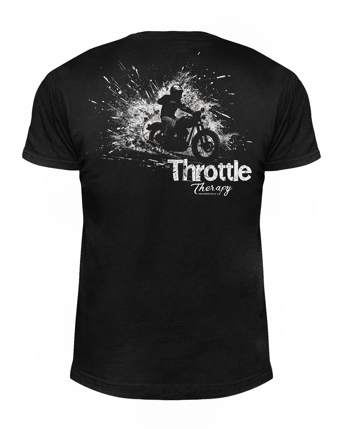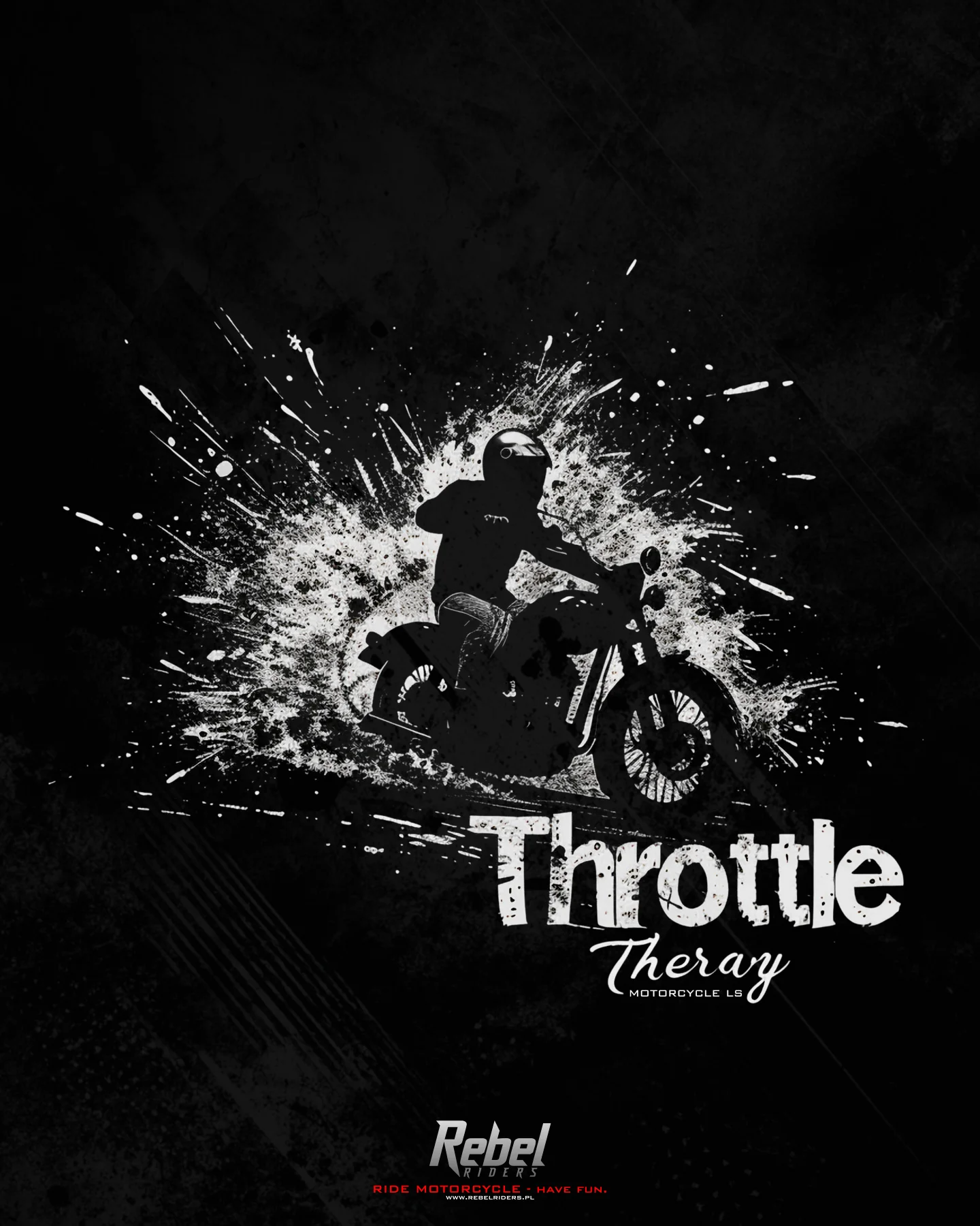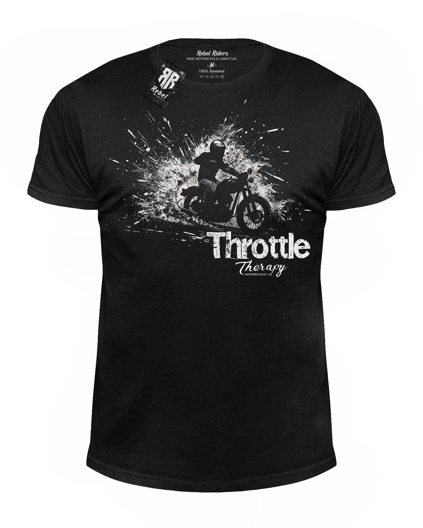 Oryginalny T-shirt męski w kolorze czarnym z nadrukiem „Trottle Therapy” oraz motywem rozpędzonego motocyklisty. Wykonany z wysokiej jakości materiałów dla komfortu użytkowania. Idealny dla miłośników streetwearu i rebelii. Dostępny w różnych rozmiarach. Doskonały element garderoby dla każdego mężczyzny, który lubi wyrażać swoją osobowość poprzez ubrania. Zdobądź go już teraz na stronie Rebel Riders!