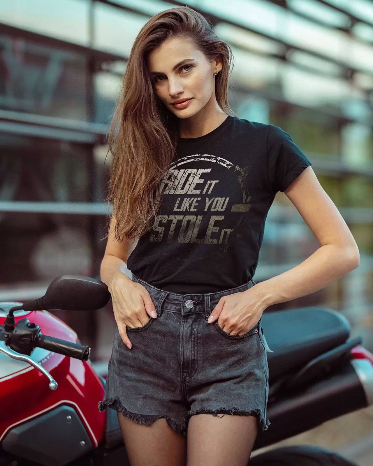 Czarny t-shirt damski "RLSI" to idealna propozycja dla każdej kobiety, która kocha motocykle i chce wyrazić swój rebeliancki charakter poprzez ubranie. Wykonany z wysokiej jakości materiałów, gwarantuje komfort noszenia i trwałość. T-shirt jest ozdobiony motocyklowym wzorem, który dodaje mu charakteru i wyjątkowego stylu. Doskonale sprawdzi się zarówno na co dzień, jak i podczas spotkań motocyklowych czy imprez. Dzięki uniwersalnemu czarnemu kolorowi, łatwo dopasujesz go do różnych stylizacji. Niech Twój strój odzwierciedla Twój indywidualizm i pasję do motocykli. Zainwestuj w oryginalny t-shirt damski "RLSI" i podkreśl swój wyjątkowy styl!